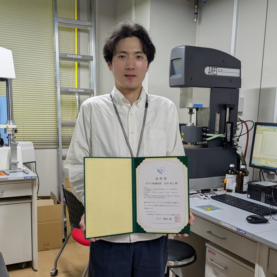 【高分子機能学】安井知己助教が第76回コロイドおよび界面化学討論会において若手口頭講演賞を受賞
