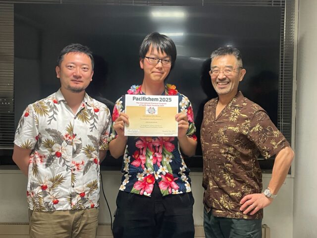 有機化学第一研究室M1の川口聡貴さんが、2025年12月15-20日にホノルルで開催されたPacifichem2025において、Student Research Competition Finalistに選出され、Organic部門のWinnerに輝きました。