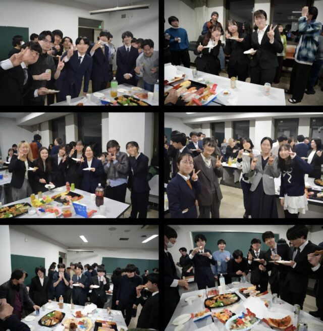 夜には打ち上げを兼ねた懇親会が開催されました。生物学専修の多くの研究室は理学部5号館にありますが、ゲノムダイナミクス研究センターや地球環境科学研究院など別の建物に研究室があったり、臨海実験所など札幌キャンパス以外に本務があってなかなか普段学生と顔をあわせる機会の少ない教員もいます。年に一度の研究実習発表会は生物学専修のほとんどの教員が一同に集う貴重な機会で、学生さんたちもこの機会にと積極的に交流している姿が印象的でした。