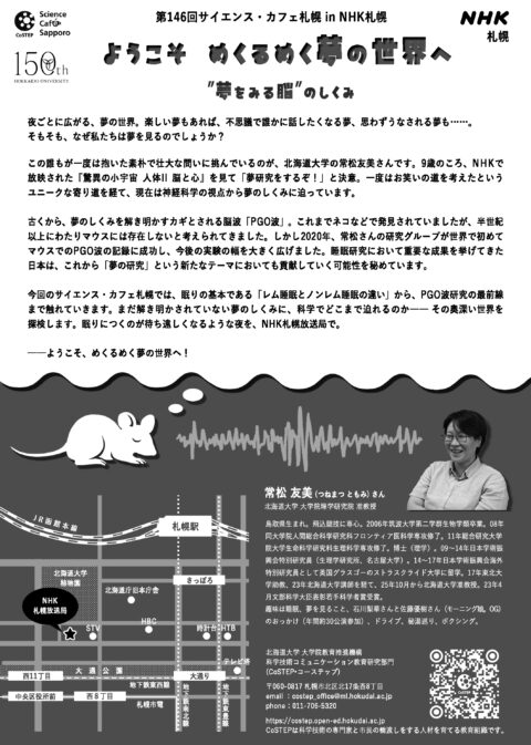 常松友美准教授(行動神経生物学系)が第146回 サイエンス・カフェ札幌 in NHK札幌にゲスト出演します(2025/12/19)