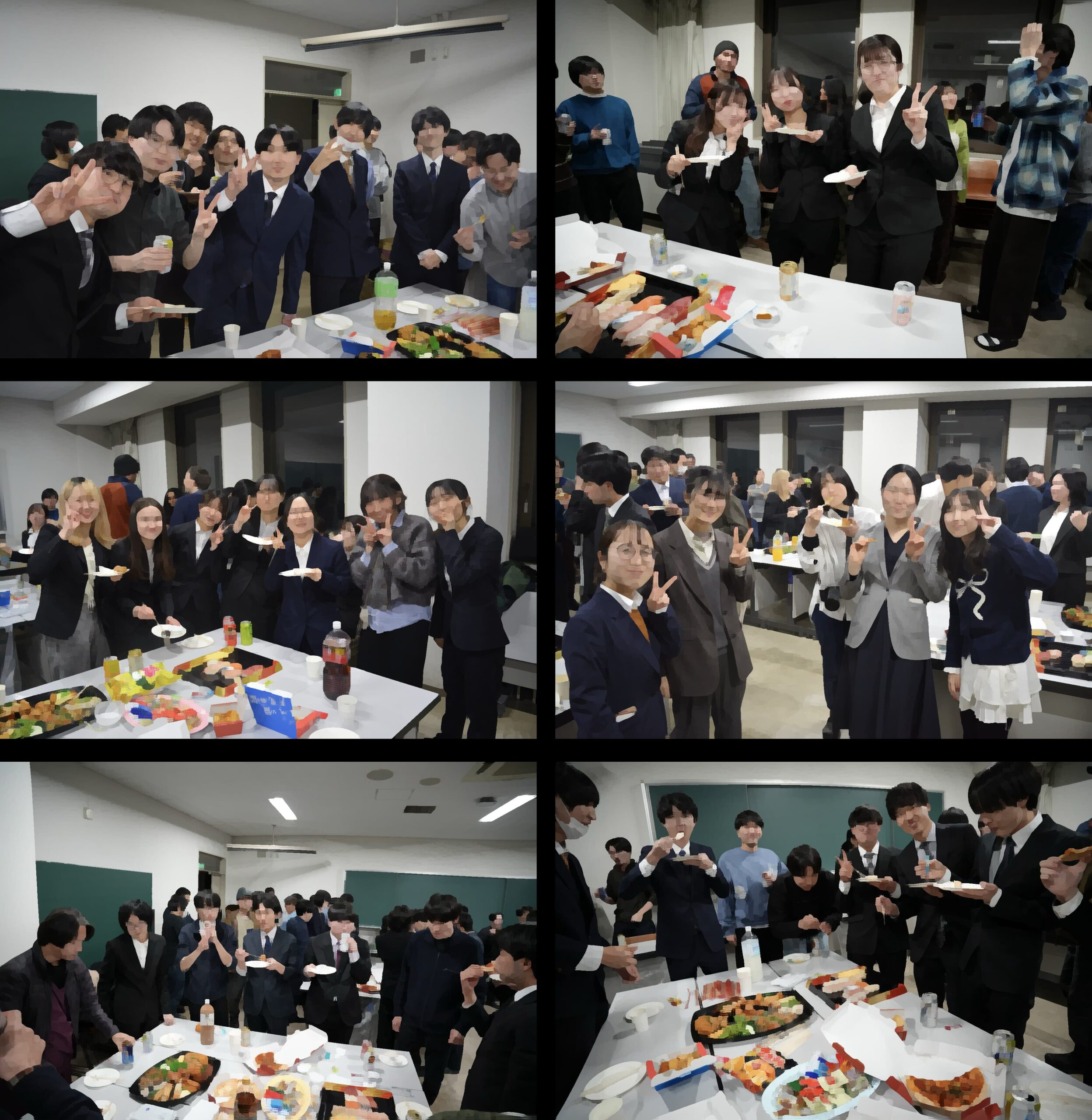 夜には打ち上げを兼ねた懇親会が開催されました。生物学専修の多くの研究室は理学部5号館にありますが,ゲノムダイナミクス研究センターや地球環境科学研究院など別の建物に研究室があったり,臨海実験所など札幌キャンパス以外に本務があってなかなか普段学生と顔をあわせる機会の少ない教員もいます。年に一度の研究実習発表会は生物学専修のほとんどの教員が一同に集う貴重な機会で,学生さんたちもこの機会にと積極的に交流している姿が印象的でした。