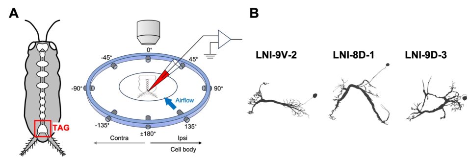行動神経生物学分野(生命システム科学コース行動制御科学分野)の小川宏人教授らの研究グループは、活動電位を発生しないノンスパイキングニューロンと呼ばれる神経細胞の気流刺激に対する反応を可視化し、刺激の方向選択性が細胞の部位によって独立していることを明らかにしました。この論文は生物科学科卒業生(2021年3月卒業)で、生命システム科学コース修士課程修了生でもある白旗洸太さん(2023年3月修了)の研究成果であり、European Journal of Neuroscience誌に2025年11月19日オンライン公開されました。