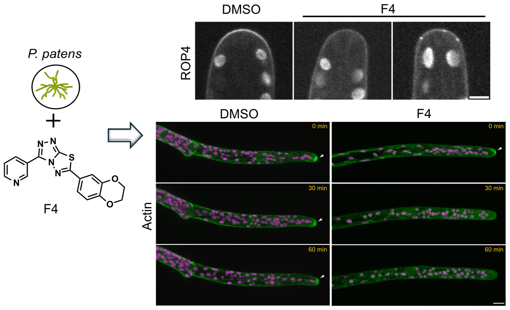 Figure 1: Loss of polar ROP gradient and actin organization upon chemical inhibition.