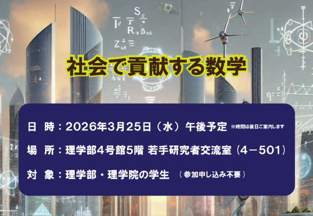 2026年3月25日開催予定【数学科】講演会:社会で貢献する数学 -