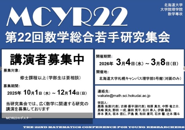 2026年3月4日-2026年3月8日開催予定【数学科】第22回数学総合若手研究集会~数学の交叉点~ -