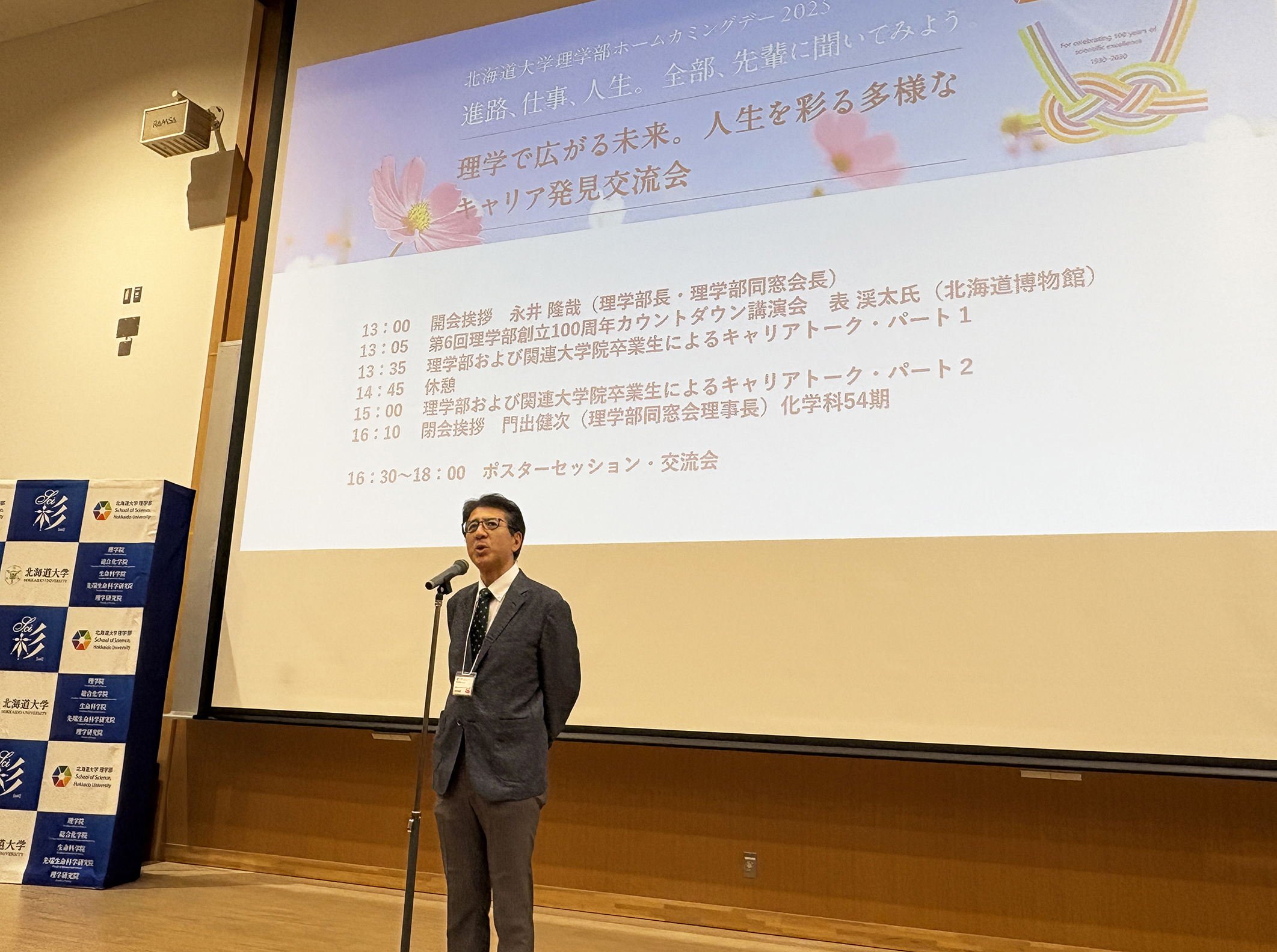 永井隆哉 理学部同窓会長(理学研究院長/理学部長/地球惑星科学部門教授)は、参加してくださったみなさまに深い感謝の意を述べました。