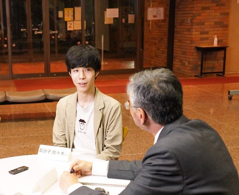 佐々木 2年生の後半くらいから、やりたいことがはっきりしてきて、高分子機能学だけは自ら勉強するようになりました。最近、専門分野を学ぶことが楽しく、理学部に惹かれた意味が分かってきました。